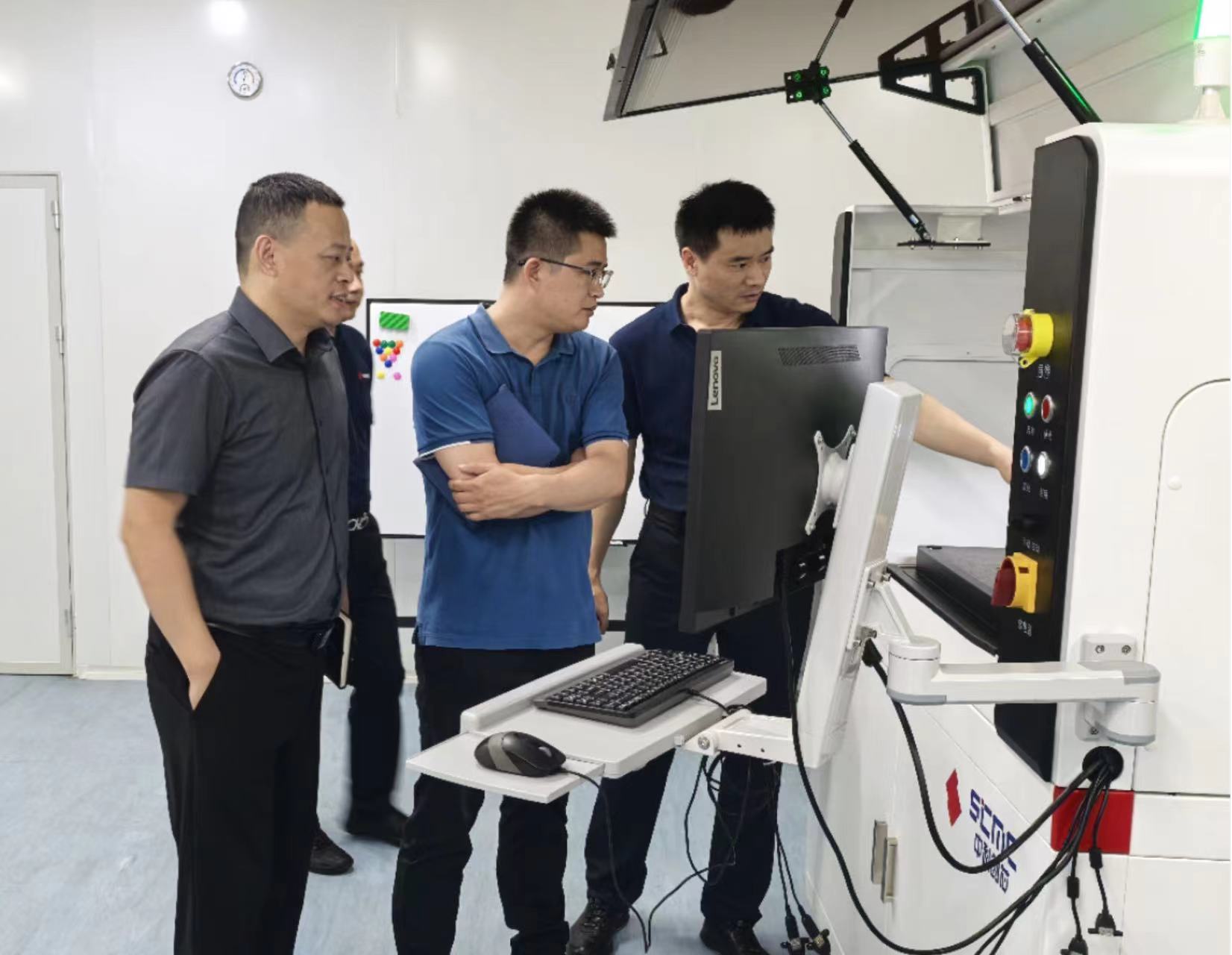 7月19日下午,合肥市高新區(qū)管委會副主任黃禮杰、高新集團董事李安一行蒞臨中科創(chuàng)芯參觀交流,中科創(chuàng)芯總經(jīng)理張青松、副總經(jīng)理韓紅波、運營總監(jiān)郭建軍等陪同參觀。